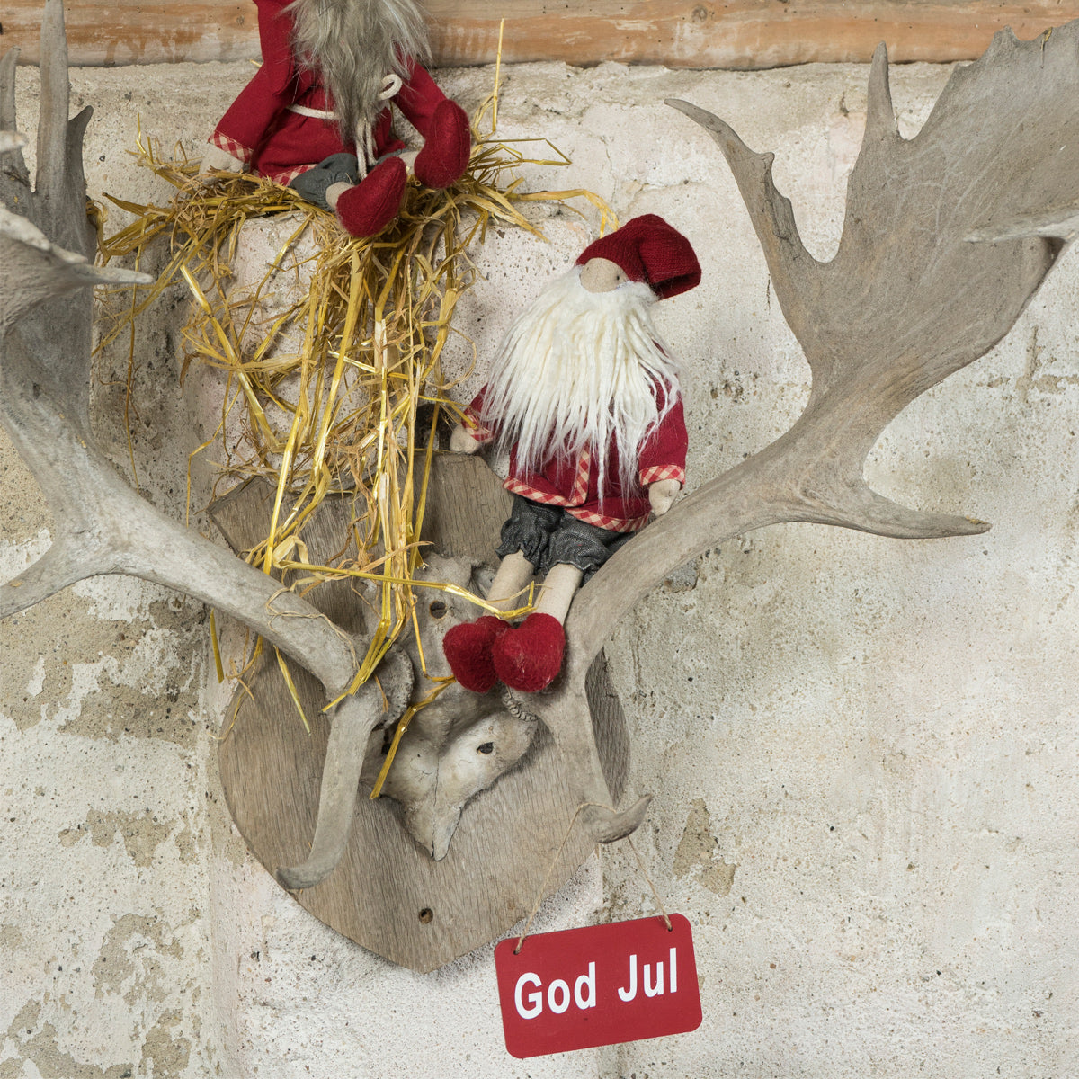 God Jul skilt fra Speedtsberg i rød - størrelse 21 x 7 cm