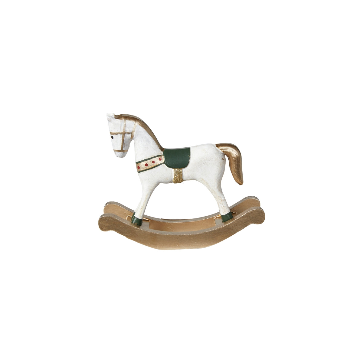 Den klassiske gyngehest i træ. Nem at dekorere ind for at skabe en hyggelig stemning. Kun til dekoration. Fåes i flere størrelser og farverne rød og grøn.