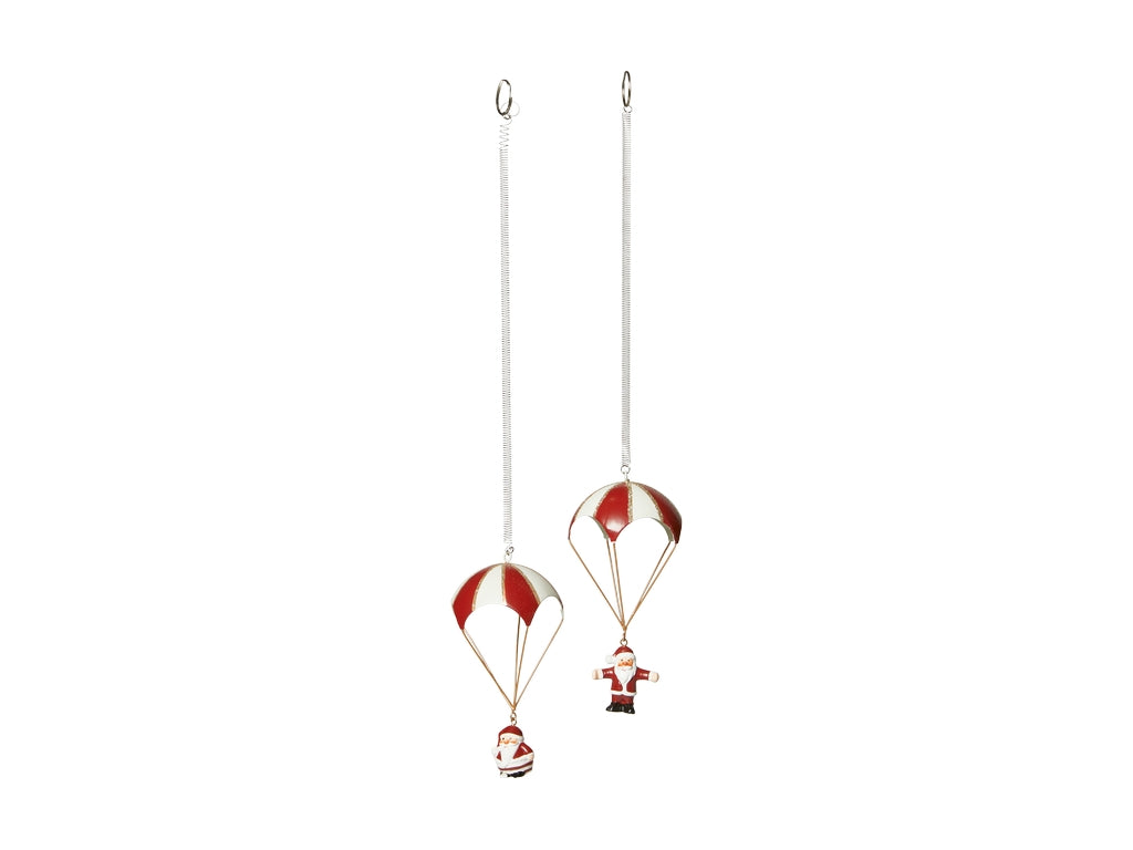 Julemand i metal faldskærm med fjeder ophæng. Sjov og hyggelig jule dekoration.