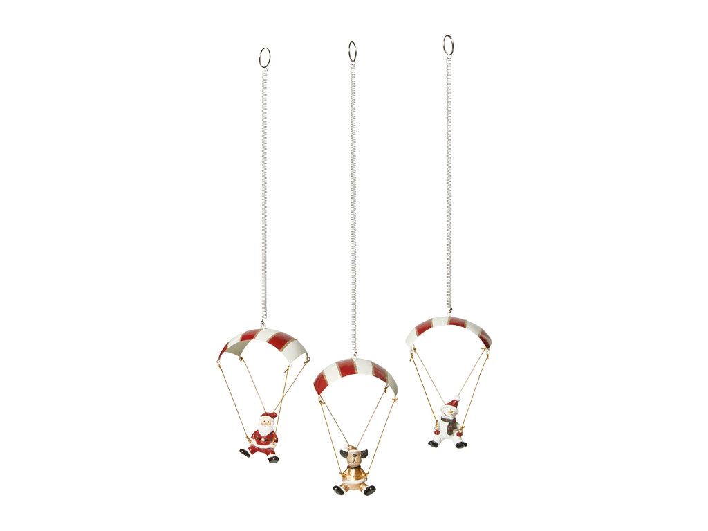 Julemand i metal faldskærm med fjeder ophæng fra Speedtsberg. Sjov og hyggelig jule dekoration.