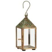 Lanterne lille blomstret top med grøn patina fra Ib Laursen. Materialet er glas og metal.